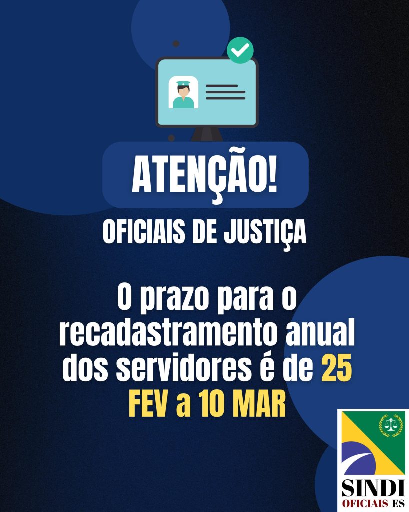 O recadastro anual obrigatório deve ser feito, exclusivamente, pelo Sistema de Recadastramento do PJES até 10/3. Acesse aqui o link do recadastramento!